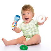 ميكروفون تعليمي سيُسعد مغنيي المبتدئين. مزود بتأثير ضوئي، و2 مفتاح ملون، وألحان، وتأثيرات صوتية، ووظيفة لتضخيم الصوت. اضغط على مفتاح التضخيم واسمع صوتك كما في ميكروفون حقيقي. يضيء الضوء عندما يكتشف الميكروفون نغمة أعلى. يحفز هذا الميكروفون نمو اللغة، والإدراك البصري والسمعي، والمهارات الحركية...