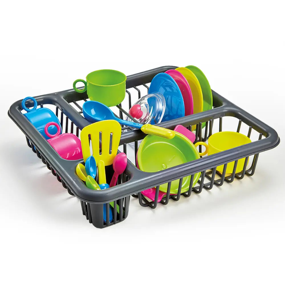 • يتضمن 17 قطعة ملونة: أدوات المائدة، والأطباق، والأكواب، ورف التجفيف
