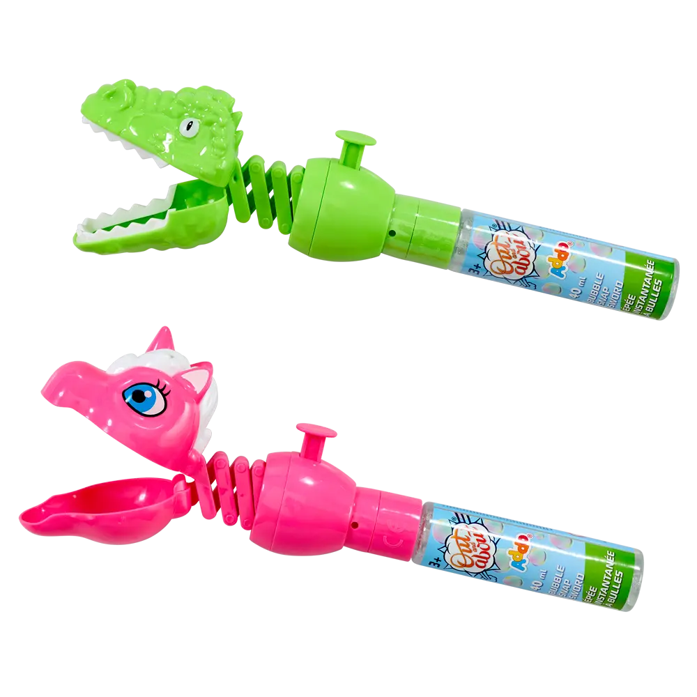The Out and About Bubble Snap Sword by Addo brings extra fun to outdoor play with its unique design and bubble-blasting action! Featuring an exciting snap-open animal head design, kids can press the button to reveal a crocodile or unicorn head while creating a stream of magical bubbles. The compact and easy-to-use design makes it perfect for outdoor adventures, parties, and imaginative play.