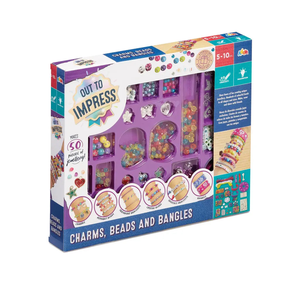 استمتع لساعات طويلة بصنع ما يصل إلى 50 قطعة من المجوهرات لأصدقائك وعائلتك - بما في ذلك الخرز المعلق، وحبات الأبجدية، وأساور الصداقة، وخرز الكريستال، وأساور رباط الحذاء، والأساور.