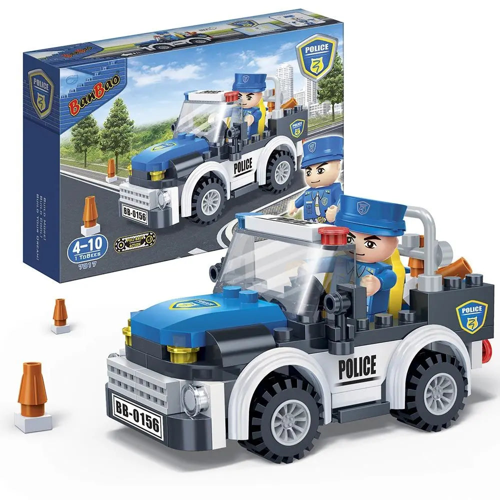 سيارة شرطة بانباو ذات وظيفة السحب، 88 قطعة، مكعبات بناء تعليمية، نموذج لعبة 7017 للأطفال، متوافقة مع الماركات.