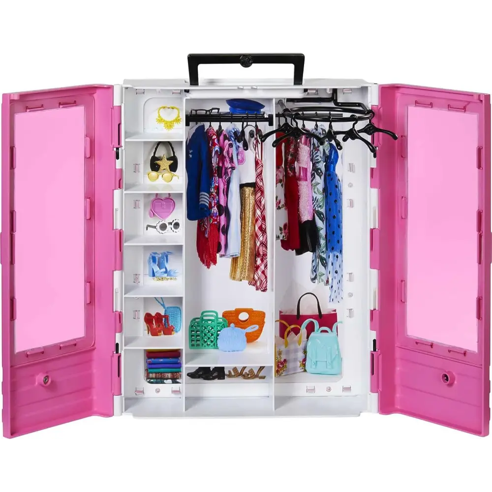 تتميز مجموعة ألعاب باربي "الخزانة النهائية" مع الدمية والإكسسوارات بأنها أنيقة من الداخل والخارج مع الملابس والإكسسوارات المرفقة.