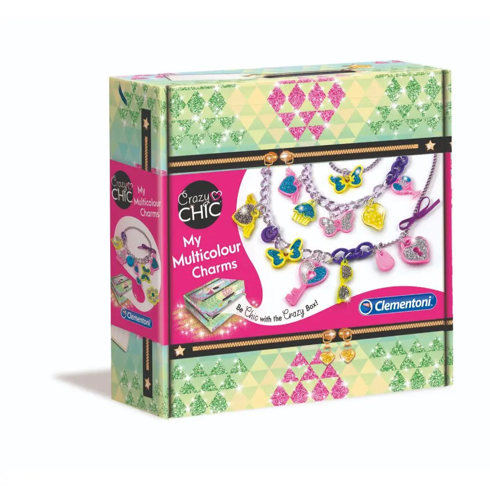 استمتعي مع تعليقات كرازي شيك وألوانها العصرية للغاية! تحتوي المجموعة على: قلادات وحلقات من الألومنيوم، والكثير من التعليقات الملونة للغاية لتزيينها بالترتر، وطين للتشكيل لعمل الكثير من الخرز. اكتشفي جميع التركيبات المختلفة لإنشاء مجوهرات ذات تأثير نيون!