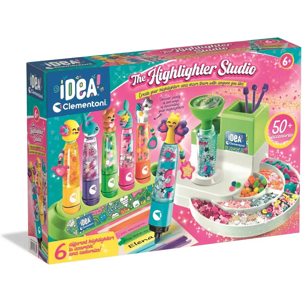 مجموعة كليمنتوني آيديا هايلايتر ستوديو لاب هي مجموعة أدوات إبداعية ممتعة وتعليمية تسمح للأطفال بتصميم وتخصيص أقلامهم المميّزة الخاصة باستخدام مجموعة متنوعة من الإكسسوارات والزينة الملونة. تتضمن هذه المجموعة العملية كل ما يلزم لتجميع أقلام تعمل بشكل كامل - حبر، أغطية، أنابيب، فلاتر، رؤوس، وحتى بريق وزينة ذات طابع شخصيات. مع أماكن مخصصة لكل مكون، يمكن للأطفال تنظيم موادهم بسهولة أثناء استكشاف إبداعاتهم. صُممت هذه المجموعة لتنويع الخيال والتعبير عن الذات، وتدعم مهارات الحركة الدقيقة والتطور الفني. إنها مثالية للأطفال من سن 6 سنوات فما فوق، وهي الهدية المثالية للصناع الصغار الذين يحبون خلق شيء فريد من نوعه.