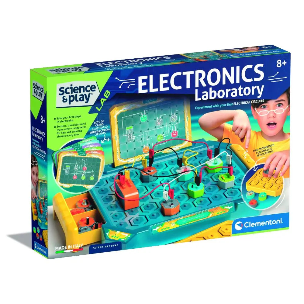 تبدأ رحلة استكشاف عالم الكهرباء مع مختبر لبناء دوائر إلكترونية تعمل! مع الوحدات المُصممة براءة اختراع، يصبح صنع الدوائر الكهربائية متعة كبيرة! لعبة تُعرّف الأطفال بموضوع صعب للغاية، وذلك من خلال السماح لهم بالتجريب على شيء جديد ومثير باستخدام أيديهم. دقة التركيب الصحيح وقدرة الدائرة العاملة، لتعلم جميع أسرار الإلكترونيات بشكل مستقل مع الاستمتاع. لعبة شيقة تحفز ذكاء الطفل أثناء قيامه بتجميع المكونات وإنشاء دوائر كهربائية تعمل بشكل مختلف. بالإضافة إلى العناصر المُركبة مسبقاً، تحتوي المجموعة على 18 وحدة لتركيبها وقفل مبتكر، كلها مبنية على مكونات مصنوعة في إيطاليا. آلية تركيب مُصممة براءة اختراع مضمونة الأصالة. تُشغّل الإلكترونيات الأضواء وتُفعّل أجهزة الاستشعار، وذلك بربط الوحدات والأدوات الكهربائية بطريقة آمنة تماماً على طاولة العمل الخاصة. تضم أكثر من 20 دائرة كهربائية بمستويات صعوبة مختلفة، و10 بطاقات مزدوجة الجانب، ومواد مفصلة لإيجاد الكثير من مصادر الإلهام.