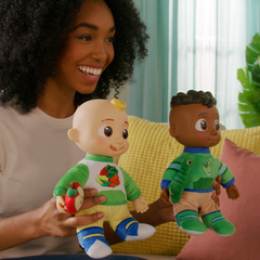 Bring home the fun of CoComelon with the My Friend Cody Plush Doll! JJ’s best friend, Cody, comes to life in this adorable, soft plush toy dressed in his favorite green dinosaur shirt. Always ready for an adventure, Cody even holds a little plush dinosaur friend on his arm! Press his tummy to hear fun phrases and musical clips from “Cody’s Special Dinosaur Day,” one of CoComelon’s most-loved songs. Perfect for snuggles, sing-alongs, and imaginative play, Cody is sure to become your child’s new best buddy.