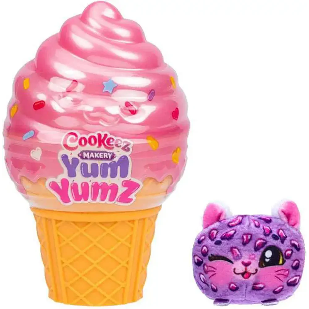 Scoop up the sweetest surprise with Cookeez Makery Yum Yumz! These adorable plush pets are tucked inside an ice cream cone, bursting with fun and sweet scents. Pop off the top to reveal an irresistible, collectible friend shaped like a tasty treat! Each Yum Yumz plush comes from Cookeez Makerys world of delight, where pets and desserts collide in the most adorable way. With over 30 pets to collect, there's always a new plushie to meet and smell!