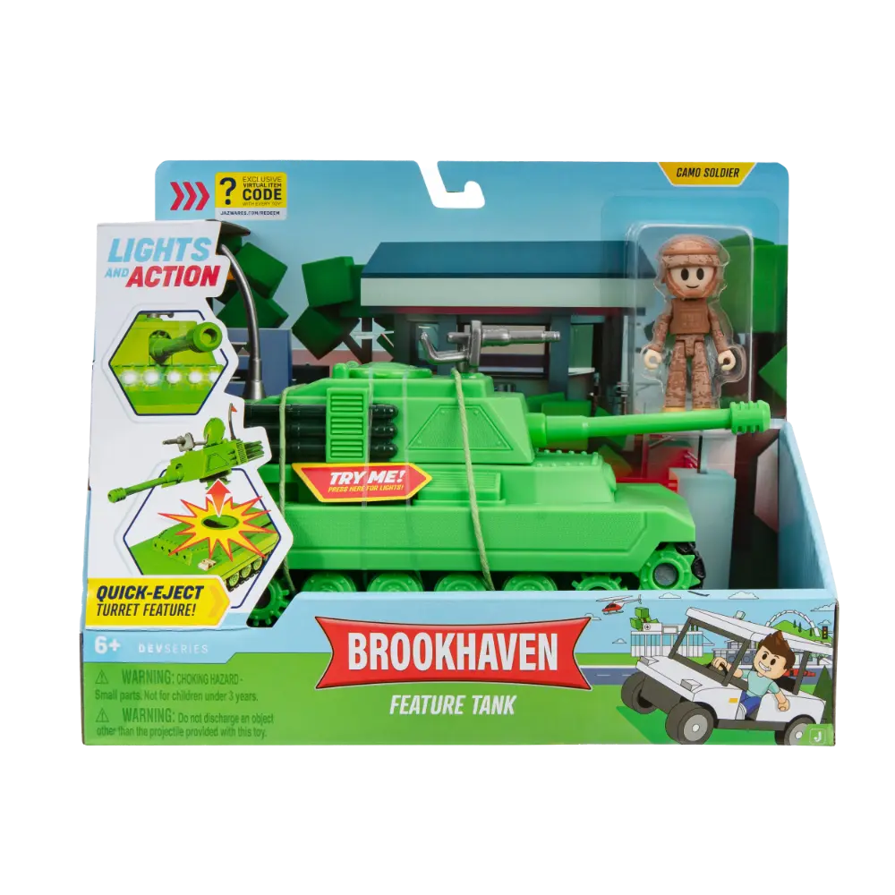 انطلق في جولة مثيرة مع دبابة بروكلين الرئيسية. تتميز الدبابة بعجلات دبابة تعمل، وقنبلة مدفعية دوارة، وهي سيارة بطول 7.5 بوصة جاهزة لدوريات الحي. كما تتضمن شخصية قابلة للدمج بقياس 2.75 بوصة لجندي مموه يقود الدبابة، وعندما تصبح الأمور صعبة، يمكن إخراج المدفعية عند الطلب. تتضمن العبوة أيضًا قائمة فحص خاصة للمُجمّعين، بالإضافة إلى رمز عنصر افتراضي حصري يُفتح قفل قبعة دبابة لرمزك الشخصي.