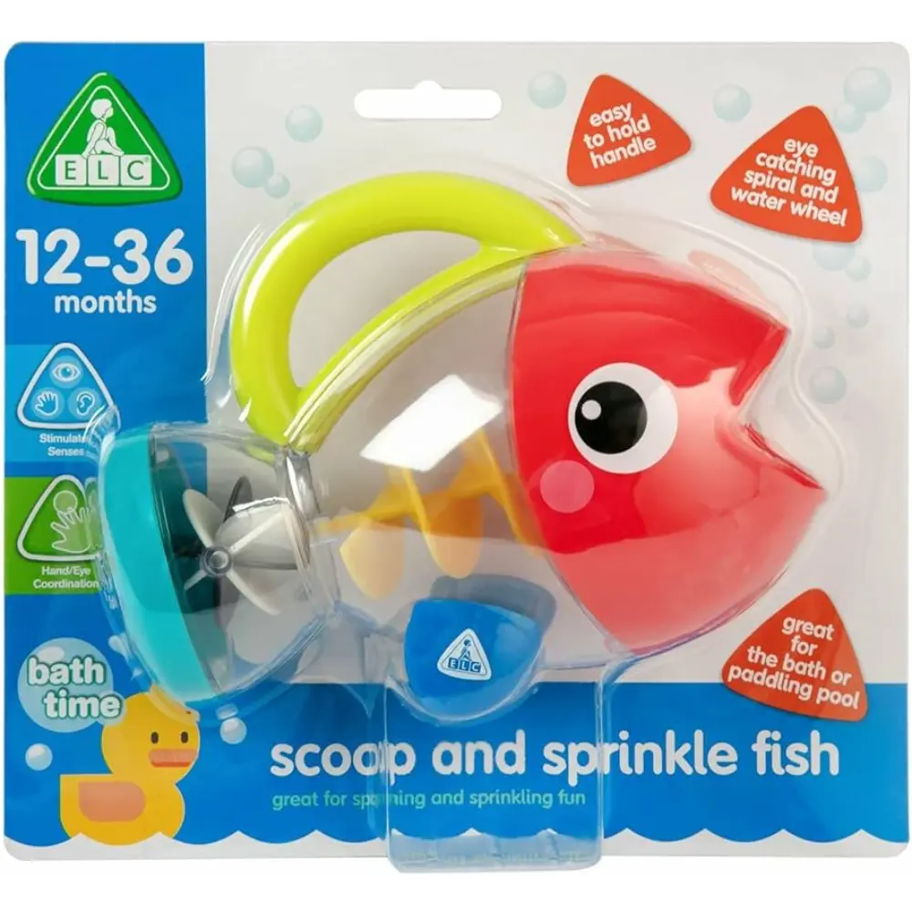 رائع للمرح والرشّ، سيحب الصغار اللعب بصيد السمك من سن التعليم المبكر. استخدم هذا اللعب السمكة اللطيفة في الحمام أو العب بها في حوض الاستحمام. اجمع الماء في فم السمكة وشاهد الماء وهو يتسرب عبر اللولب الجذاب ويسيل عبر عجلة الماء في الداخل. اقلب السمكة وشاهد الماء وهو يتدفق من ذيلها. ما عليك سوى حمل المقبض، وجمع بعض الماء وشاهدها تدور وترشّ. شجع الثقة بالماء.
