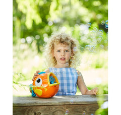 أطعم فرانكي السمكة آلة الفقاعات من سنتر التعليم المبكر بمزيج الفقاعات وشاهد كيف ينفث عليك تيارات من الفقاعات! املأ فرانكي السمكة بمزيج الفقاعات وأشغله لبدء تشغيل المروحة ودوران عصي الفقاعات - مثالي لخلق جو ممتع و"فقاعي" في الحفلات. مثالي لألعاب الحديقة مع أفضل أصدقائهم، فسوف يغذي خيال الصغار مع المساعدة في تنمية قدرتهم البدنية بشكل عام. بالإضافة إلى ذلك، سيسمح لهم بتجربة العالم من خلال حواسهم.