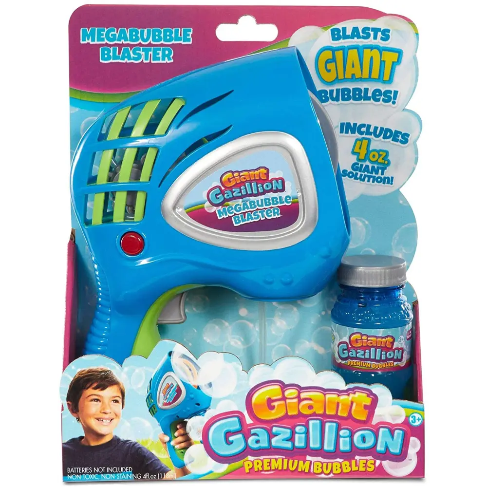 أطلق فقاعات عملاقة بحجم 6 بوصات بنقرة زر واحدة مع جهاز إطلاق الفقاعات العملاق الجديد كلياً من غازيليون. يُنتج هذا الجهاز العملاق وحلول الفقاعات فقاعات أكبر من أي وقت مضى.