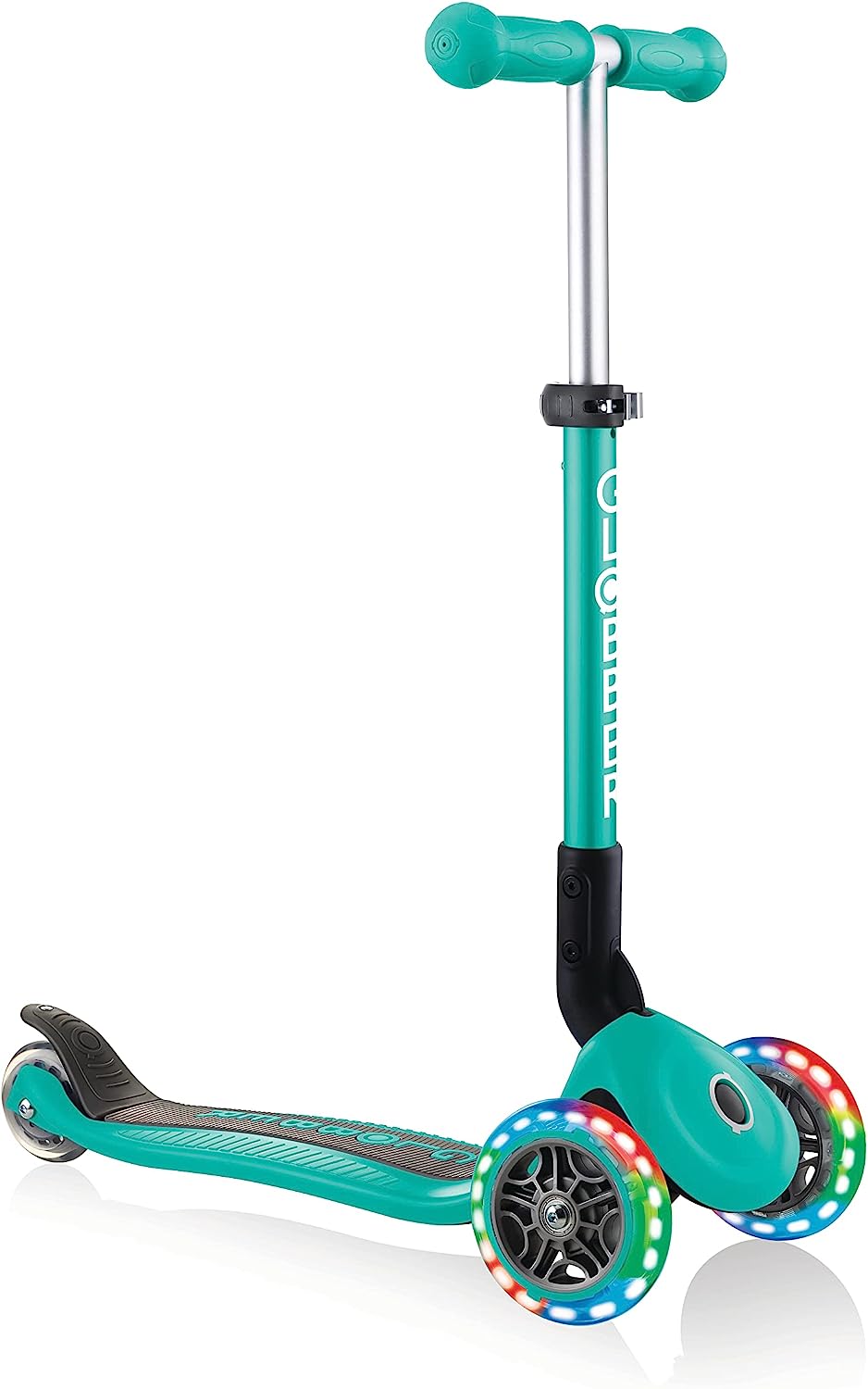 دراجة Globber Junior Foldable Fantasy Lights هي نسخة معدلة من دراجة Globber Mini Scooter. هذه الدراجة الصغيرة ذات الثلاث عجلات مصممة خصيصاً للأطفال. وتتميز بخصائصها الخاصة، منها: تصميم صديق للطفل: سطح منخفض وطويل وعريض بشكل خاص لضمان وقوف آمن. يمكن تعديل ارتفاع المقود بثلاثة مستويات، ليناسب نمو الطفل. سهولة الاستخدام: مع نظام الطي المُخترع، يمكن طي الدراجة وسحبها كعربة يد واحدة بضغطة زر. وزنها 2.5 كيلوغرام فقط. مناسبة للمبتدئين.