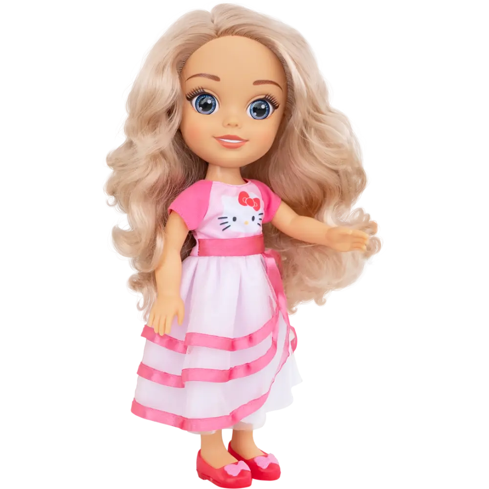 أحضري إلى المنزل فرحة الاحتفال مع دمية هاياتي ذات الـ 14 بوصة بفستانها اللطيف لحفلات هيلو كيتي! مصنوعة من مواد عالية الجودة، ناعمة، وقابلة للعناق، هاياتي هي الرفيقة المثالية للصغار الذين يحبون هيلو كيتي. عيونها الزجاجية الجميلة والواقعية تتألق بسحر، بينما تسمح ذراعاها وساقاها المتحركتان بالتقاط صور مرحة وخوض مغامرات خيالية. مرتدية فستان حفلات نابض بالحياة يضم وجه هيلو كيتي الشهير، ومصممة مع أحذية متناسقة، هاياتي جاهزة للحفلات، وأوقات اللعب، والمرح اليومي.