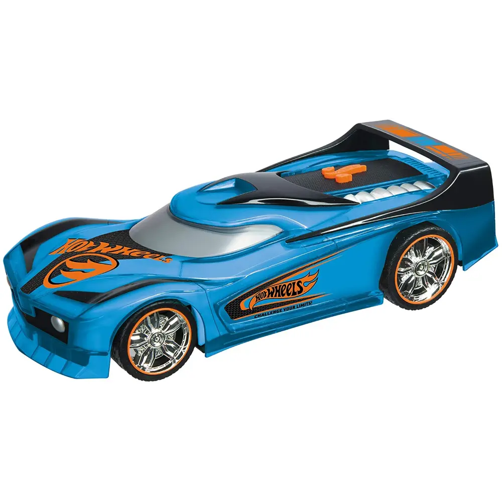 سيارة هوت ويلز سبارك ريسر مع أضواء وأصوات - سبين كينج. يتغير لونها من البرتقالي إلى الأحمر أثناء انطلاق السيارة! بضغطة زر، اسمع محرك السيارة ينتقل إلى وضع التشغيل العالي وشاهد جسم السيارة يتحول إلى لون جديد تمامًا. تحتوي السيارة على أضواء وأصوات وموسيقى! للأعمار 3 سنوات فما فوق. البطاريات (3 بطاريات AA) متضمنة.