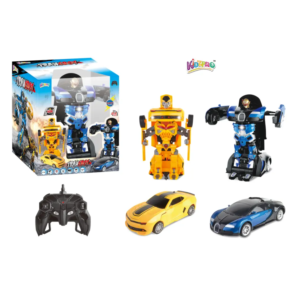 سيارة كيدزبرو المتحولة من سيارة إلى روبوت. مصنوعة من مادة ABS قوية معتمدة، غير سامة، آمنة، متينة، سطح أملس بدون شظايا. بطاريات قابلة لإعادة الشحن متضمنة.