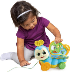 حوّل وقت اللعب مع كتاب الفراشة القابل للسحب! انطلق في نشاطٍ ممتع مع لعبة السحب التي تشجع الأطفال على المشي والحركة والتمارين، ثم استرخِ مع الكتاب القابل للفصل لاستكشاف دورة حياة الفراشة وأكثر من ذلك. دحرج الفراشة لتراها تتذبذب وترى حركتها. تُشغّل الموسيقى وأصوات الحيوانات أثناء دفعك أو سحبك للفراشة. تشجع الفراشة الأطفال الصغار على التمدد مثل القط، والدحرجة مثل الخنزير، والرفرفة والطيران مثل الفراشة. عندما يحين وقت الجلوس، افصل الكتاب التفاعلي للقاء الفراشة وبعض أصدقاء الحيوانات. اضغط على زر الموسيقى لتشغيل أصوات وأغاني وقت القصة. استمع إلى قصة الفراشة.