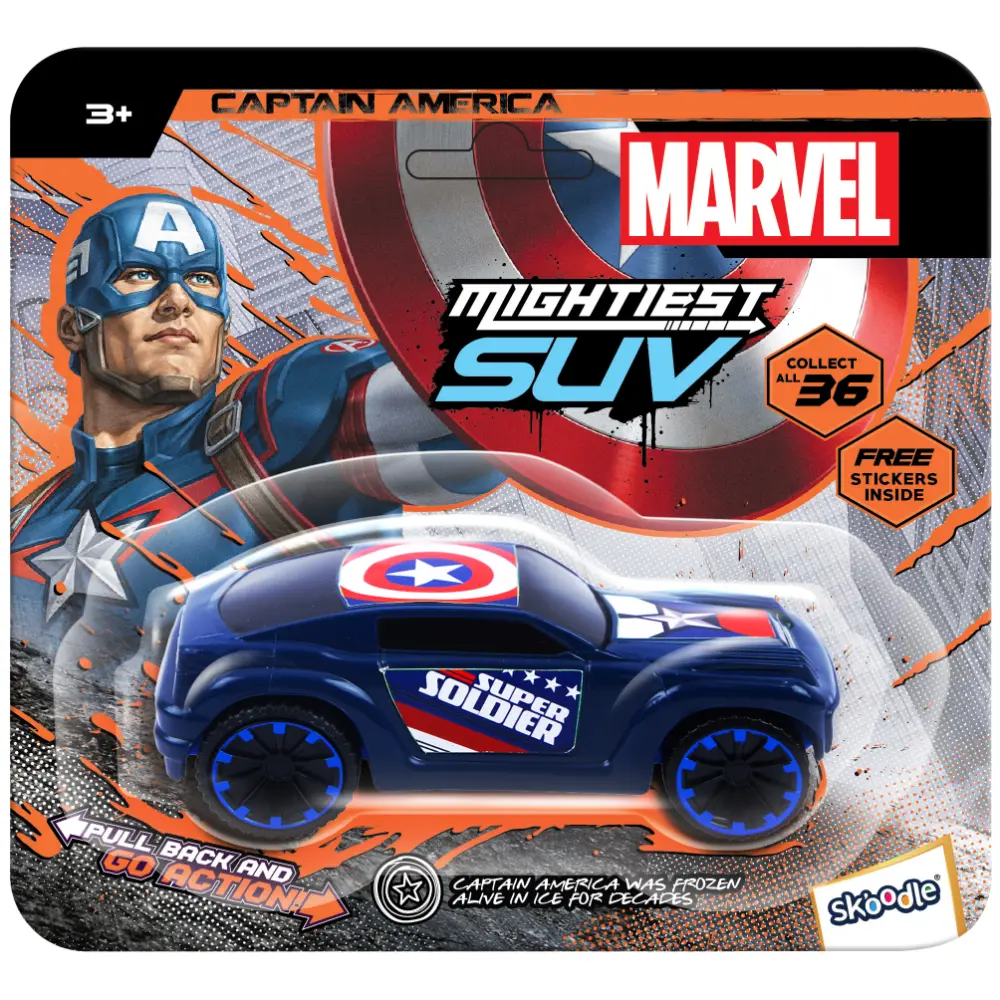 سيارات Marvel SUV التي تعمل بسحبها للخلف ديناميكية ومسلية، وتعدك بمرح سريع وسريع الخطى بين أصابعك. ما عليك سوى سحبها للخلف، وإطلاقها، ومشاهدتها وهي تندفع للأمام، مما يثير الإعجاب لدى الأطفال والكبار على حد سواء بفضل حركاتها السريعة. هذه السيارات صغيرة الحجم، وملونة، ومصممة للإثارة، وهي ضرورية لقضاء وقت ممتع لا نهاية له. ستكون شخصية كابتن أمريكا الخاصة بك سريعة جدًا بحيث لا يستطيع أعداؤه التعامل معها في هذه المعركة الرائعة لمكافحة الجريمة.
