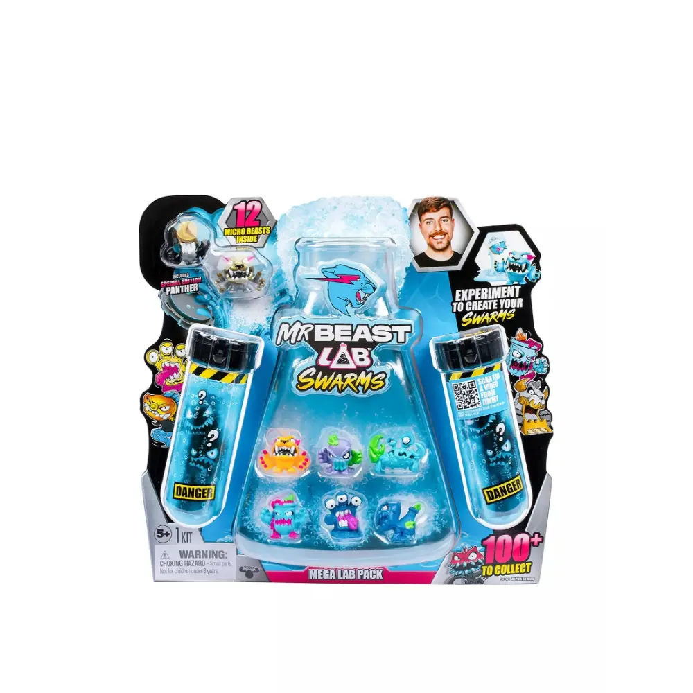 أنشئ أسرابك الخاصة من مختبر MrBeast. استعد لأروع تجربة حيث يخلق الأطفال 4 من بين 12 شخصية فوضوية مستوحاة من MrBeast. سيضيف هواة الجمع الماء إلى أنبوب الاختبار، ويقومون بتقويته جيداً، ليشهدوا ظهور الأسراب من مجموعة من الفقاعات. تتضمن كل عبوة 12 من حيوانات Swarm المصغرة، بما في ذلك النمر ذو الرأس الصلب بنسخة خاصة مضمونة. مع أكثر من 100 شخصية فريدة من MrBeast Lab Swarms مقاس 1 بوصة (2.5 سم) للجمع، بما في ذلك النمر الفائق اللون النادر والمطلوب، ينتظركم اكتشاف جديد. لكن سارعوا، حيث يتوفر فقط 1000 من نمور Hyperchrome. ينتمي كل سرب إلى فريق مميز، مثل Home Horrors و Techno Terrors. أي فريق سيحظى بقلب هواة الجمع، وأي فريق سيتمكن من إكماله أولاً؟ احتضنوا الفوضى، اخلطوا، وحركوا، وأنشئوا، وانطلقوا في رحلة تجريبية مثيرة مع MrBeast Lab Swarms الجديد كلياً.