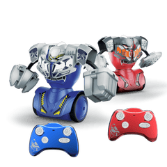 مجموعة من 2 روبوت قتال يتم التحكم بهما عن بعد مع 4 قبضات عملاقة قابلة للتبديل وتركيبها بسهولة لتلبية الاحتياجات التكتيكية المختلفة! كل روبوت مزود بعيون LED رائعة وإصدارات صوتية للضرب!