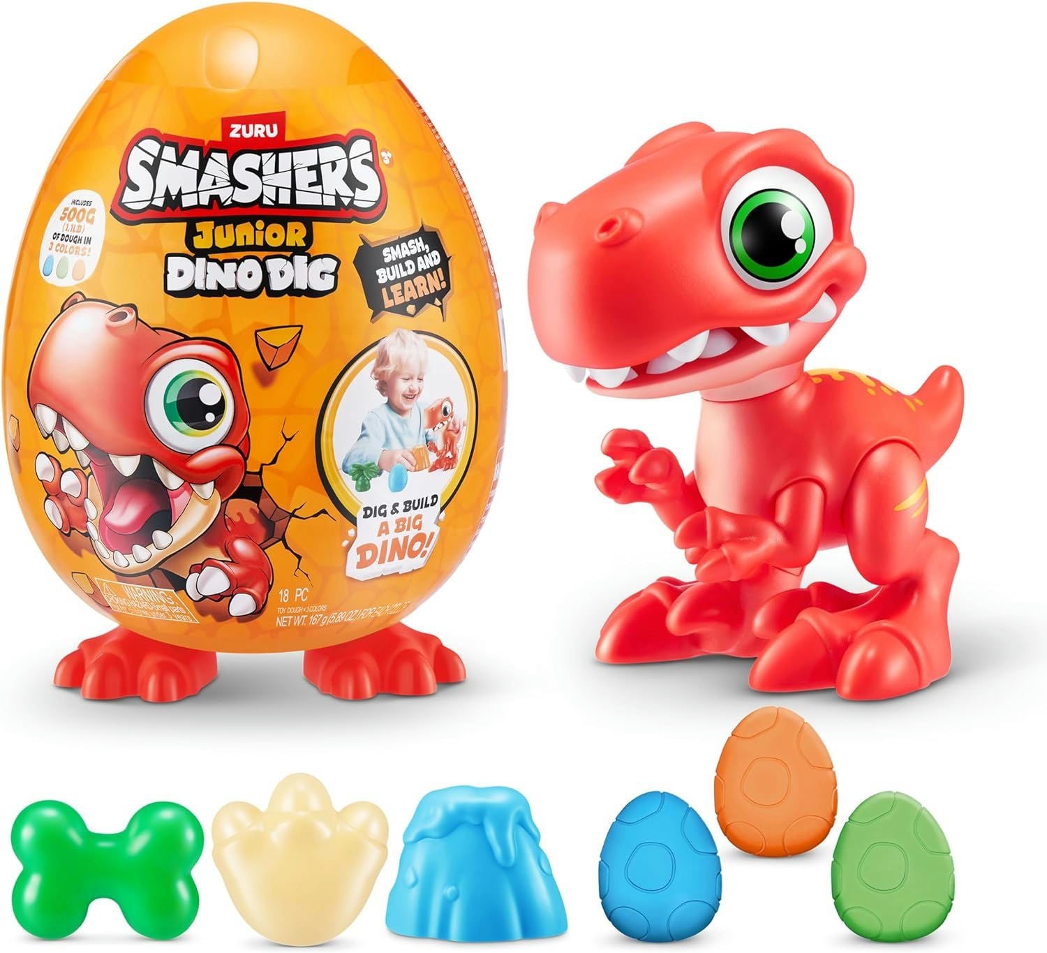مغامرة التنقيب عن الديناصورات من سمَاشرز جونيور هي مغامرة ضخمة للاكتشافات الصغيرة. سيلعبه طفلك بحب، حيث سينقب في عجينة الديناصورات اللينة ويكتشف قطع الديناصورات المخفية. باستخدام حل المشكلات، سيربط قطع الديناصورات ويصنع صديقه الجديد من الديناصورات. يوجد 12 مفاجأة في هذه الكرة اللطيفة، بما في ذلك 3 قوالب لتشكيل 500 غرام من عجينة الديناصورات! سمَاشرز جونيور هي اللعبة الحسية المثالية، وهي رائعة لتنمية مهارات الأطفال الصغار الحركية الدقيقة. ابدأ مغامرتك اليوم مع سمَاشرز جونيور - دمر، ابني، وتعلم!