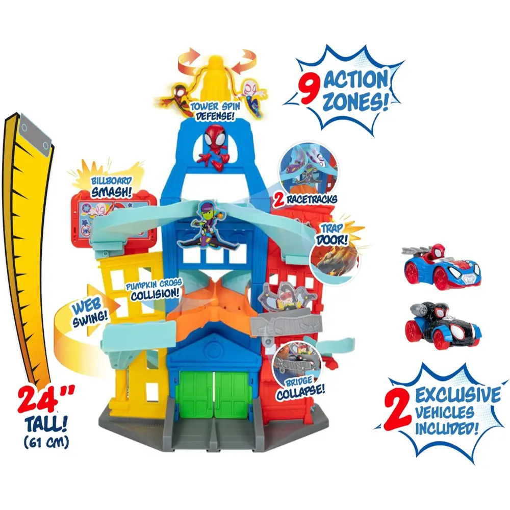 نقدم لكم مجموعة مسارات سبايديمان الرائعة من المعدن - إضافة مثيرة للاهتمام إلى مجموعة ألعاب أي مغامر صغير. تتميز المجموعة بمسار واقعي للمدينة مع أضواء وأصوات، و12 منطقة حركة، و مصعد من 3 مستويات ليتمكن سبايديمان من التنقل فيها. تتضمن المجموعة سيارات معدنية مصبوبة قياس 3 بوصات.