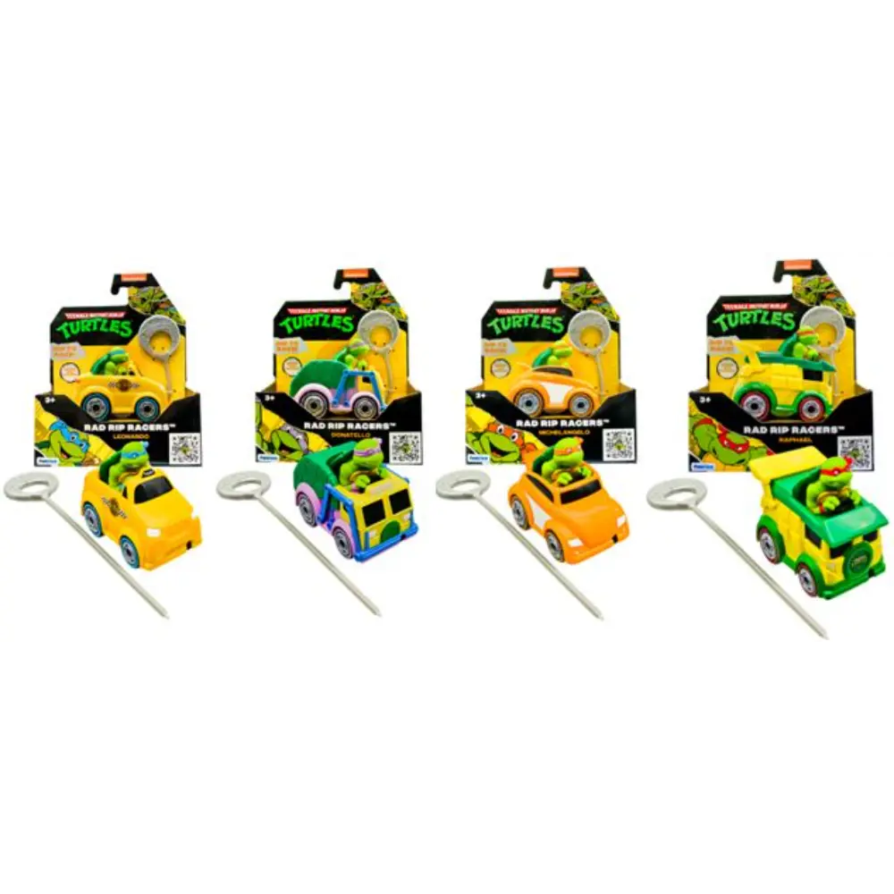 سيارات سباق تيمبورال النينجا المتحولة المراهقة (TMNT) راد ريب ريسرز مصممة للسباق، وتتميز بشخصياتك المفضلة من TMNT! ما عليك سوى إدخال الحبل في السيارة، وسحب علامة الحبل، ومشاهدة النينجا يندفعون! متوفرة بأربعة طرازات سيارات وشخصيات مختلفة. انطلق وسبق مع ليوناردو، ومايكل أنجلو، ودوناتيلو، ورافائيل. اجمعهم جميعًا.