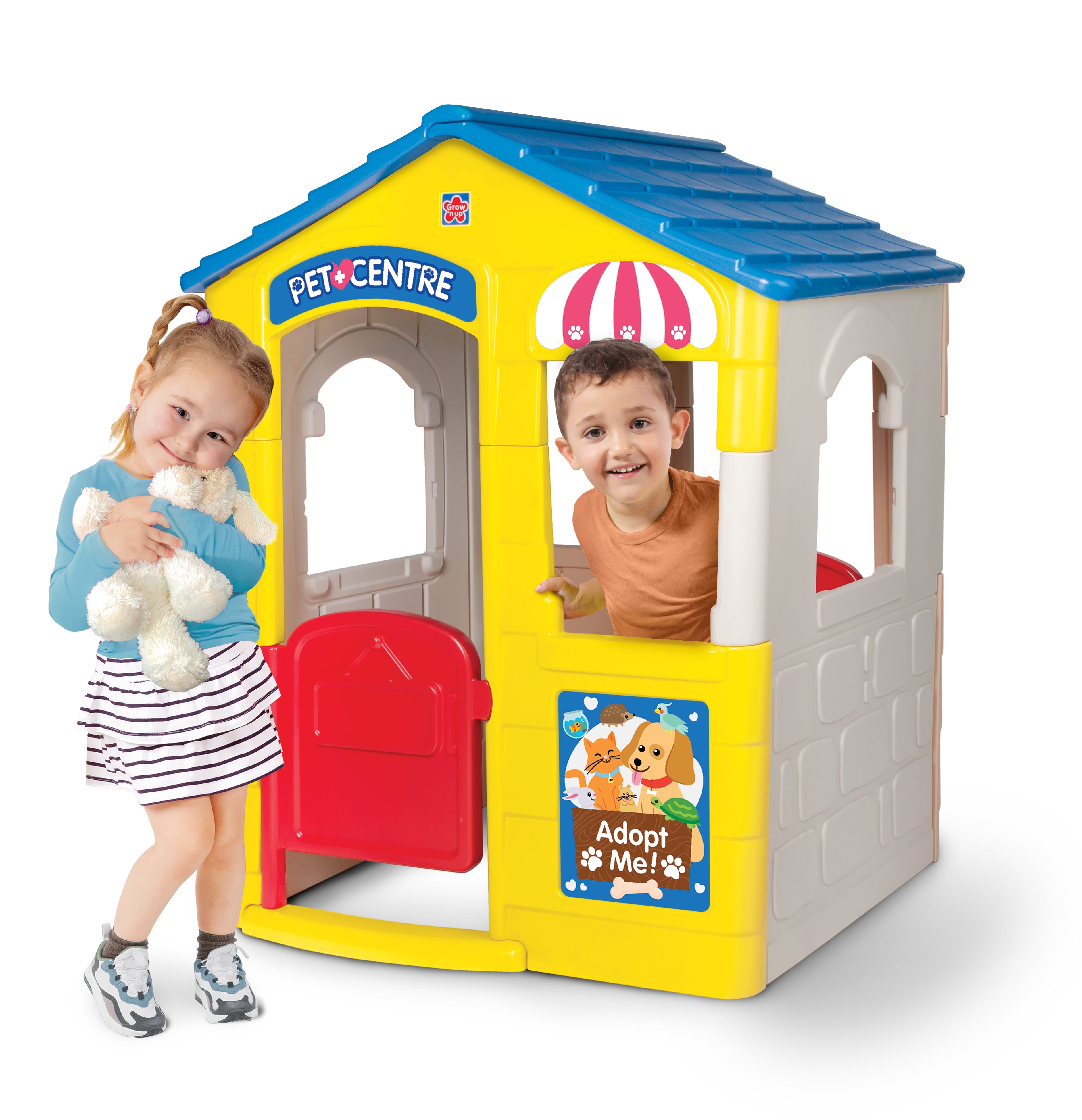The Grow N Up 2-In-1 Pet Center & Playhouse is a fun and versatile playset that combines imaginative play with a cozy pet corner. Children can explore the playhouse, enjoy role-playing adventures, and interact with their furry friends in a safe and engaging environment. Its durable construction ensures long-lasting outdoor use, while the thoughtful design encourages creativity, responsibility, and active play.