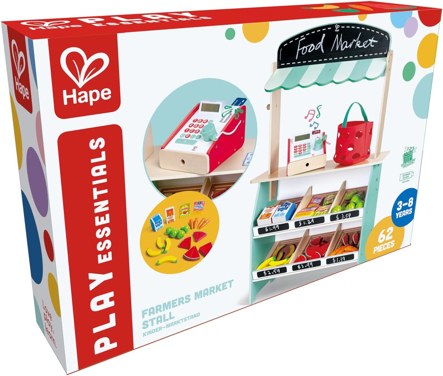 Perfect for developing fine motor skills, communication, creativity, and social skills, this market stall is ideal for children aged 3 and above.