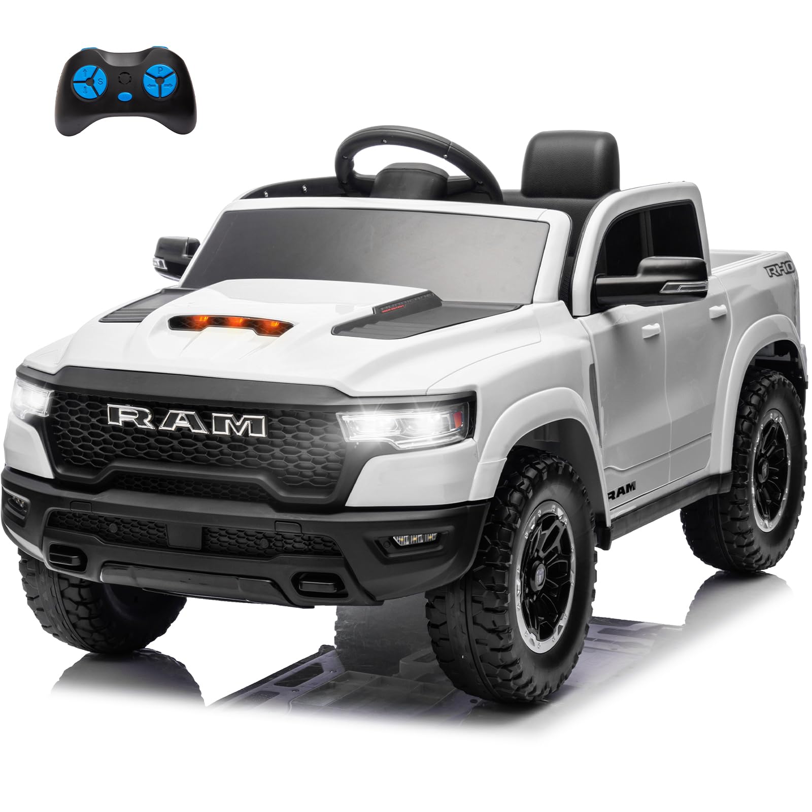 Let your child enjoy the thrill of driving with the Dodge Ram RHO Truck Ride-On Car! This officially licensed off-road pickup combines safety, style, and fun, giving kids an authentic driving experience. Equipped with a rigorously tested three-point seatbelt and a parent priority remote control, adults can safely guide and adjust speed or direction at any time. The realistic design, featuring LED headlights, functional doors, imitation tires, and a simulated key start system, makes every ride feel like the real thing. With a spacious rear storage compartment and easy-to-use gear shifter, adventure and imagination go hand in hand.