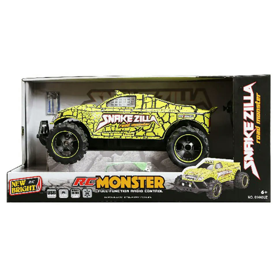 The New Bright Remote Control Snake-Zilla Road Monster Car is a fun and exciting toy for kids. With its realistic design and remote control functionality, it provides a thrilling driving experience. This monster car is built to handle rough terrain, making it suitable for both indoor and outdoor play. It is made from durable materials to ensure long-lasting enjoyment.