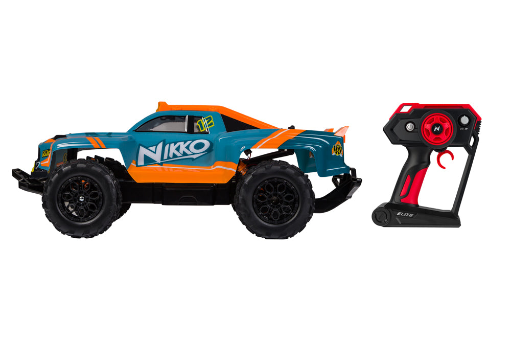 Experience top-tier off-road racing with the Nikko Trophy Trucks X2, designed for ultimate speed, precision, and durability. Equipped with a quick-charge 7.4V battery and powerful 360 drive motor, these trucks reach speeds of over 17 KPH (10.5 MPH). The ultra-strong, lightweight body houses a fully independent suspension chassis, metal steering linkages, and rear differential for superior off-road performance. With Nikko Elite 2.4GHz controllers supporting up to 40 players, digital proportional throttle and steering, and trim adjusters for precise control, Trophy Trucks X2 delivers an unmatched racing experience. Packaged in an eco-friendly gift box with carrying handle, it’s the perfect RC gift for enthusiasts.