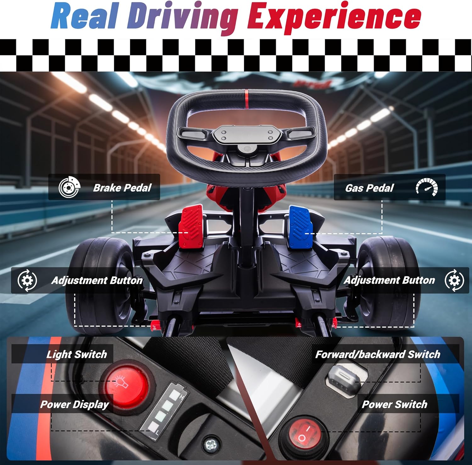Let your little driver enjoy a thrilling and interactive ride with the RAYFUN White & Black 1-Seater Ride-On Car! Designed for children aged 3 and up, this ride-on features forward and reverse functions, adjustable high and low speeds, and an exciting drift mode for added fun. The adjustable length ensures a comfortable fit as your child grows, while the compact and sturdy design provides safe and durable play indoors or outdoors.