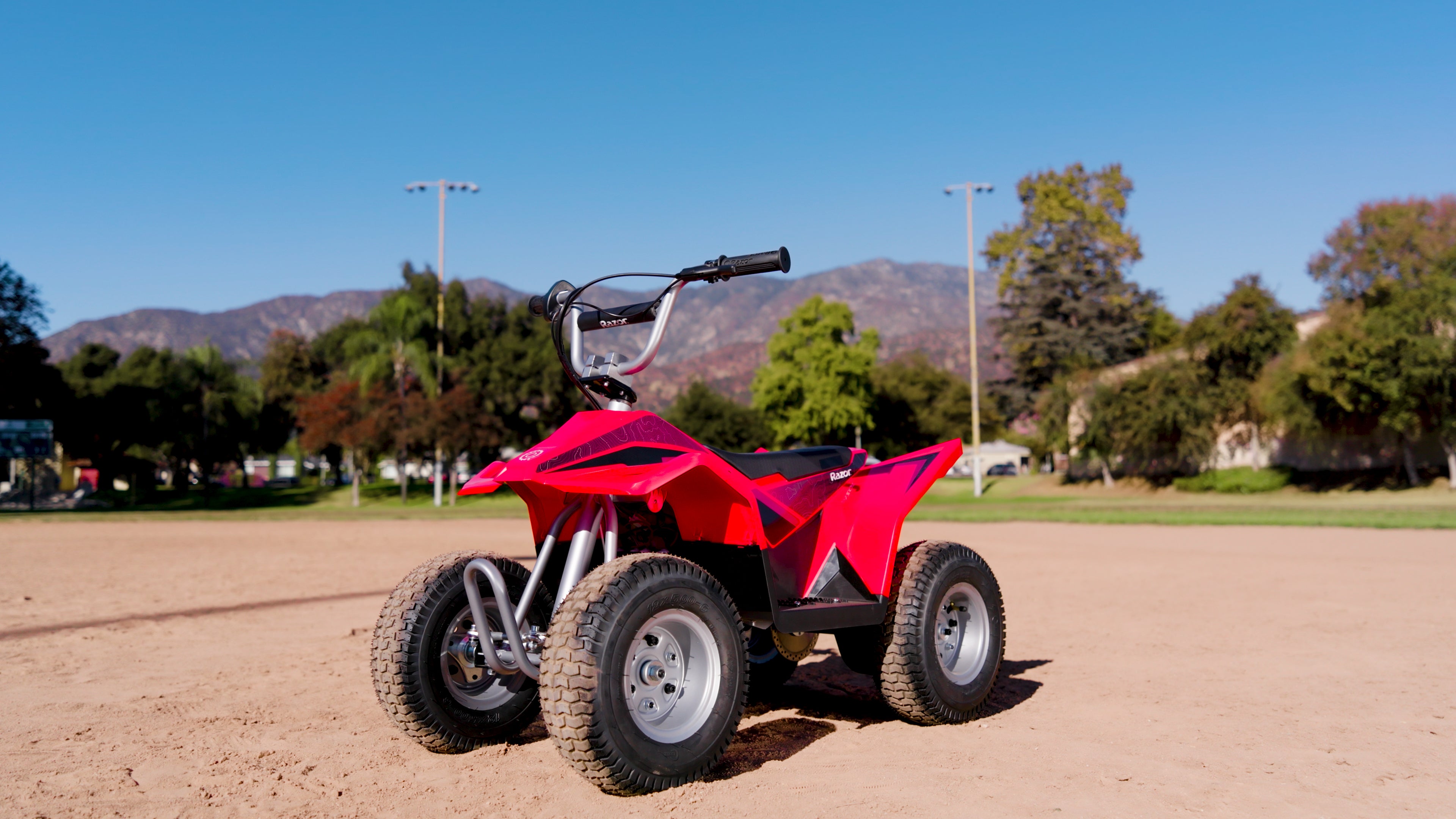When the backyard becomes too tame and the pavement too predictable, the Dirt Quad brings adventure back to playtime. Designed for kids aged 8 and up, this electric 4-wheeler combines fun and safety with a sturdy tubular steel frame, 12-inch pneumatic tires for a smooth ride, and easy-to-use controls. With twist-grip throttle acceleration and a high/low 2-speed switch, kids can reach speeds up to 8 mph (13 km/h) while the forward/reverse drive switch ensures precise maneuvering. The 24V rechargeable battery system provides up to 80 minutes of continuous use in Low Speed Mode, making every ride an exciting and lasting adventure.